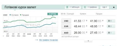 Сьогодні, 17 жовтня, середній готівковий курс долара становить 41,90 гривні у продажу та 41,53 гривні в купівлі, а євро – 48,95 гривні у продажу та 48,44 гривні у купівлі.