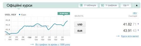 Сьогодні, 18 грудня, середній готівковий курс долара становить 42,10 гривні у продажу та 41,59 гривні в купівлі, а євро – 44,36 гривні у продажу та 43,72 гривні у купівлі.