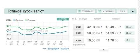 - долар – 43,25 гривні;