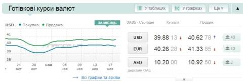 Сьогодні, 18 листопада, середній готівковий курс долара становить 40,62 гривні у продажу та 39,88 гривні в купівлі, а євро – 41,33 гривні у продажу та 40,26 гривні у купівлі.