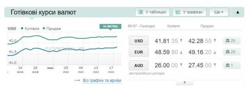 Сьогодні, 18 листопада, середній готівковий курс долара становить 42,28 гривні у продажу та 41,81 гривні в купівлі, а євро – 49,16 гривні у продажу та 48,59 гривні у купівлі.
