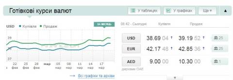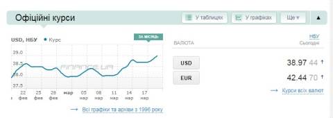 Сьогодні, 19 березня, середній готівковий курс долара становить 39,19 гривні у продажу та 38,69 гривні в купівлі, а євро – 42,85 гривні у продажу та 42,17 гривні у купівлі.