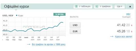 - долар – 41,42 гривні;