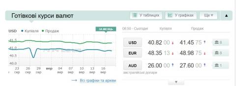 Сьогодні, 19 вересня, середній готівковий курс долара становить 41,45 гривні у продажу та 40,82 гривні в купівлі, а євро – 48,98 гривні у продажу та 48,35 гривні у купівлі.