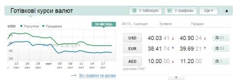 Сьогодні, 19 жовтня, середній готівковий курс долара становить 40,90 гривні у продажу та 40,03 гривні в купівлі, а євро – 39,69 гривні у продажу та 38,41 гривні у купівлі.