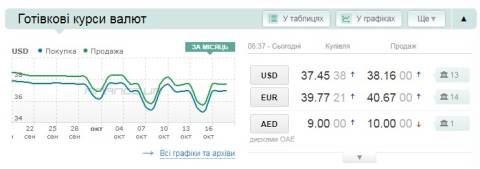 Сьогодні, 19 жовтня, середній готівковий курс долара становить 38,16 гривні у продажу та 37,44 гривні в купівлі, а євро – 40,67 гривні у продажу та 39,77 гривні у купівлі.