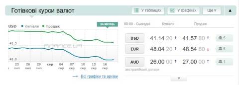 Сьогодні, 19 серпня, середній готівковий курс долара становить 41,57 гривні у продажу та 41,14 гривні в купівлі, а євро – 48,54 гривні у продажу та 48,04 гривні у купівлі.