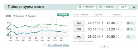 Сьогодні, 2 березня, середній готівковий курс долара становить 43,35 гривні у продажу та 42,87 гривні в купівлі, а євро – 51,29 гривні у продажу та 50,71 гривні у купівлі.