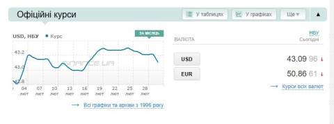 - долар – 43,09 гривні;