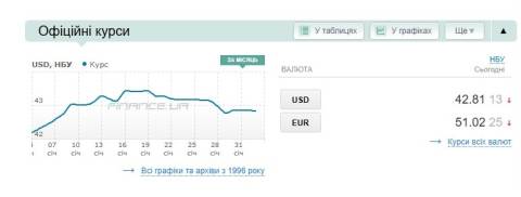 - долар – 42,81 гривні;