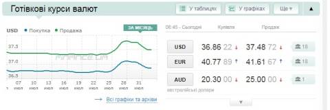 Сьогодні, 2 серпня, середній готівковий курс долара становить 37,48 гривні у продажу та 36,86 гривні в купівлі, а євро – 41,61 гривні у продажу та 40,77 гривні у купівлі.
