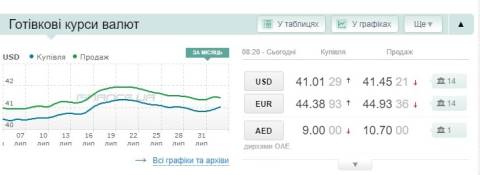 Сьогодні, 2 серпня, середній готівковий курс долара становить 41,45 гривні у продажу та 41,01 гривні в купівлі, а євро – 44,93 гривні у продажу та 44,38 гривні у купівлі.