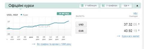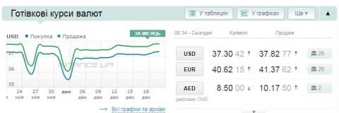 Сьогодні, 20 грудня, середній готівковий курс долара становить 37,82 гривні у продажу та 37,30 гривні в купівлі, а євро – 41,37 гривні у продажу та 40,62 гривні у купівлі.