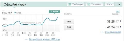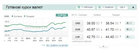 Сьогодні, 20 лютого, середній готівковий курс долара становить 38,54 гривні у продажу та 38,00 гривні в купівлі, а євро – 41,70 гривні у продажу та 40,97 гривні у купівлі.