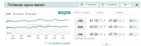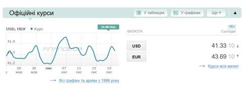 Сьогодні, 20 листопада, середній готівковий курс долара становить 41,66 гривні у продажу та 41,18 гривні в купівлі, а євро – 44,19 гривні у продажу та 43,57 гривні у купівлі.