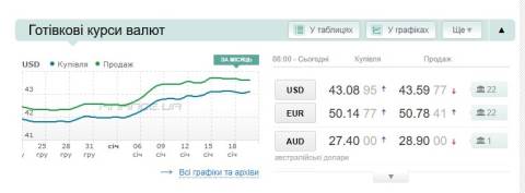 Сьогодні, 20 січня, середній готівковий курс долара становить 43,59 гривні у продажу та 43,08 гривні в купівлі, а євро – 50,78 гривні у продажу та 50,14 гривні у купівлі.