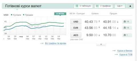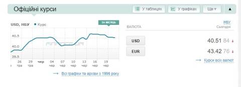 Сьогодні, 21 червня, середній готівковий курс долара становить 40,91 гривні у продажу та 40,43 гривні в купівлі, а євро – 44,15 гривні у продажу та 43,56 гривні у купівлі.
