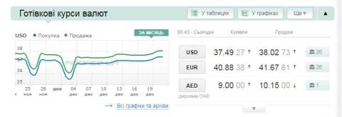 Сьогодні, 15 грудня, середній готівковий курс долара становить 38,02 гривні у продажу та 37,49 гривні в купівлі, а євро – 41,67 гривні у продажу та 40,88 гривні у купівлі.