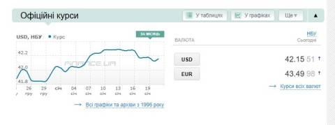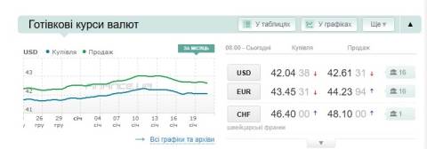 Сьогодні, 21 січня, середній готівковий курс долара становить 42,61 гривні у продажу та 42,04 гривні в купівлі, а євро – 44,23 гривні у продажу та 43,45 гривні у купівлі.