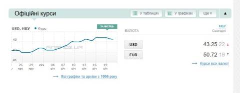 - долар – 43,25 гривні;