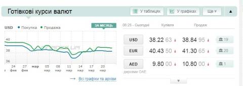 Сьогодні, 22 березня, середній готівковий курс долара становить 38,84 гривні у продажу та 38,22 гривні в купівлі, а євро – 41,30 гривні у продажу та 40,43 гривні у купівлі.