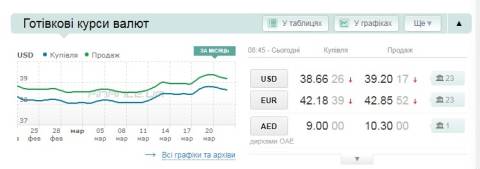 Сьогодні, 22 березня, середній готівковий курс долара становить 39,20 гривні у продажу та 38,66 гривні в купівлі, а євро – 42,85 гривні у продажу та 42,18 гривні у купівлі.