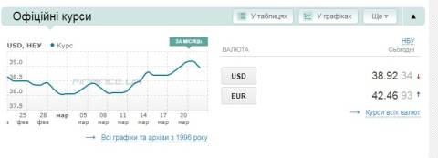 - долар – 38,92 гривні;