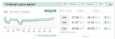 Сьогодні, 22 грудня, середній готівковий курс долара становить 38,18 гривні у продажу та 37,59 гривні в купівлі, а євро – 41,84 гривні у продажу та 41,07 гривні у купівлі.