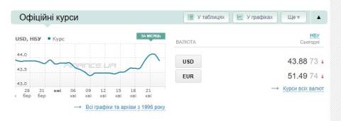 Сьогодні, 23 квітня, середній готівковий курс долара становить 44,07 гривні у продажу та 43,46 гривні в купівлі, а євро – 51,94 гривні у продажу та 51,13 гривні у купівлі.