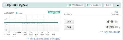 - долар – 36,56 гривні;