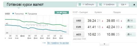 Сьогодні, 23 лютого, середній готівковий курс долара становить 39,85 гривні у продажу та 39,24 гривні в купівлі, а євро – 42,24 гривні у продажу та 41,41 гривні у купівлі.