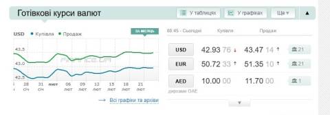 Сьогодні, 23 лютого, середній готівковий курс долара становить 43,47 гривні у продажу та 42,93 гривні в купівлі, а євро – 51,35 гривні у продажу та 50,72 гривні у купівлі.