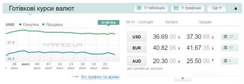 Сьогодні, 24 липня, середній готівковий курс долара становить 37,30 гривні у продажу та 36,69 гривні в купівлі, а євро – 41,67 гривні у продажу та 40,82 гривні у купівлі.