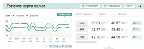 Сьогодні, 24 січня, середній готівковий курс долара становить 40,57 гривні у продажу та 39,91 гривні в купівлі, а євро – 43,45 гривні у продажу та 42,47 гривні у купівлі.