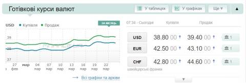 Сьогодні, 25 березня, середній готівковий курс долара становить 39,40 гривні у продажу та 38,80 гривні в купівлі, а євро – 43,10 гривні у продажу та 42,50 гривні у купівлі.