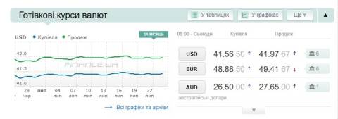 Сьогодні, 25 липня, середній готівковий курс долара становить 41,97 гривні у продажу та 41,56 гривні в купівлі, а євро – 49,41 гривні у продажу та 48,88 гривні у купівлі.