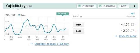 Сьогодні, 25 листопада, середній готівковий курс долара становить 41,67 гривні у продажу та 41,20 гривні в купівлі, а євро – 43,92 гривні у продажу та 43,28 гривні у купівлі.