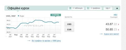 - долар – 43,87 гривні;