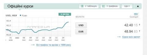- долар – 42,40 гривні;