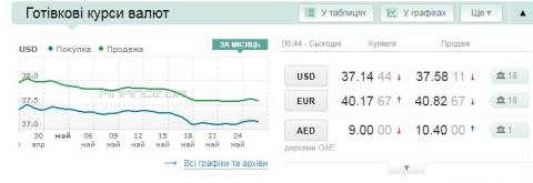 Сьогодні, 26 травня, середній готівковий курс долара становить 37,58 гривні у продажу та 37,14 гривні в купівлі, а євро – 40,82 гривні у продажу та 40,17 гривні у купівлі.