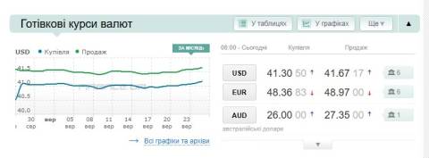 Сьогодні, 26 вересня, середній готівковий курс долара становить 41,67 гривні у продажу та 41,30 гривні в купівлі, а євро – 48,97 гривні у продажу та 48,36 гривні у купівлі.