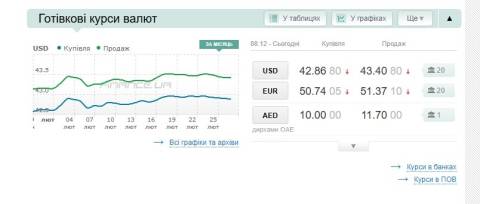 - долар – 43,20 гривні;