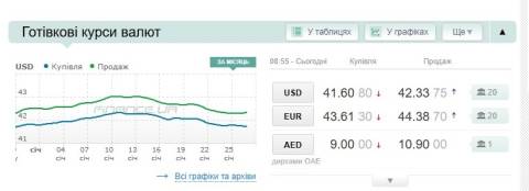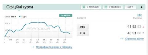 - долар – 41,92 гривні;