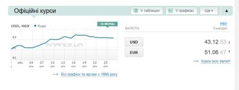 Сьогодні, 27 січня, середній готівковий курс долара становить 43,40 гривні у продажу та 42,87 гривні в купівлі, а євро – 51,44 гривні у продажу та 50,66 гривні у купівлі.
