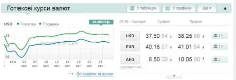 Сьогодні, 27 вересня, середній готівковий курс долара становить 38,25 гривні у продажу та 37,50 гривні в купівлі, а євро – 41,01 гривні у продажу та 40,18 гривні у купівлі.