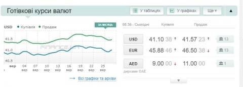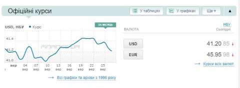 Сьогодні, 27 вересня, середній готівковий курс долара становить 41,57 гривні у продажу та 41,10 гривні в купівлі, а євро – 46,50 гривні у продажу та 45,88 гривні у купівлі.