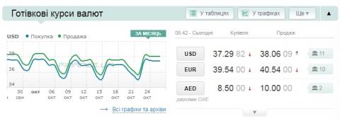 Сьогодні, 27 жовтня, середній готівковий курс долара становить 38,06 гривні у продажу та 37,29 гривні в купівлі, а євро – 40,54 гривні у продажу та 39,54 гривні у купівлі.