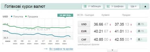 Сьогодні, 28 червня, середній готівковий курс долара становить 37,35 гривні у продажу та 36,66 гривні в купівлі, а євро – 41,01 гривні у продажу та 40,21 гривні у купівлі.