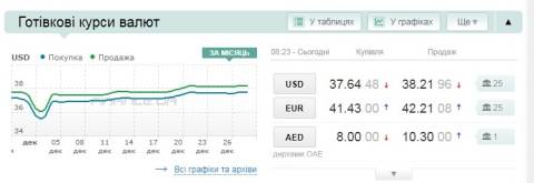 Сьогодні, 28 грудня, середній готівковий курс долара становить 38,21 гривні у продажу та 37,64 гривні в купівлі, а євро – 42,21 гривні у продажу та 41,43 гривні у купівлі.