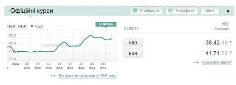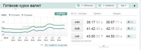 Сьогодні, 28 лютого, середній готівковий курс долара становить 38,67 гривні у продажу та 38,17 гривні в купівлі, а євро – 42,11 гривні у продажу та 41,42 гривні у купівлі.